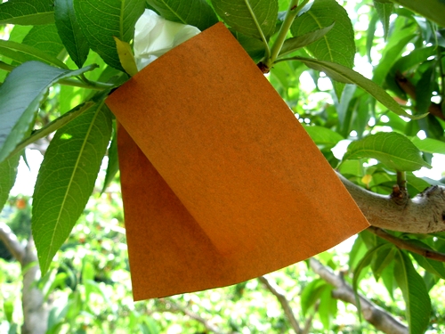 追い込みに入ったももの袋かけ作業・・・オリジナルの釈迦堂白桃が終わり、午後から黄金桃の袋掛けに入りました。