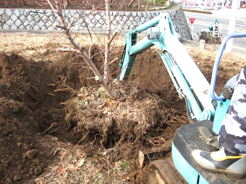 ほとんどがが3年生ですので重機を使っての作業です。この大きさになると1年我慢すれば翌年からは収穫が見込まれます。