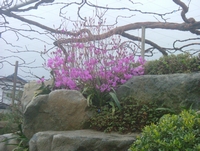 やっと天気が回復して作業が出来るようになりましたので、桃の花粉採り作業を始めました。コウモリ傘を逆さにしての、お馴染みの作業です。花びらを開く直前の蕾を採り、細かく砕いて、行程を重ねて花粉を取り出します。 花粉のある種類から、花粉のない種類へ人工受粉を行います。 売店の庭のいわつつじ(みつばつつじ)も咲き出しました。