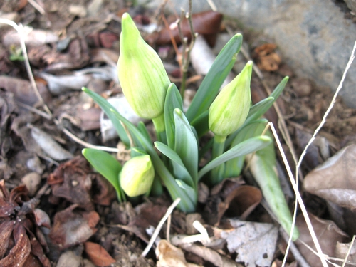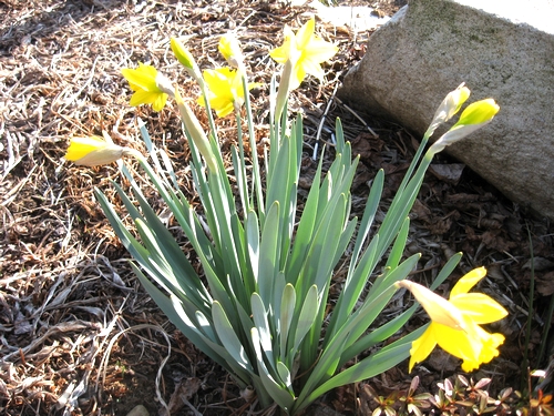 今年は春が遅れています。毎年お彼岸には庭の水仙もお墓参りに使えるのにこんなものです。