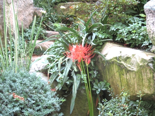 人間様は忙しいの、なんのと言ってすっかり忘れていますのに、彼岸の入りには必ず姿を見せてくれます。今年のような確かな異常気象にも、一日も違わずに芽を出し花を咲かせるとは・・・気候には全然関係なく、去年の開花から365日を球根のコンピューターが数えてるとしか思えないのですが。