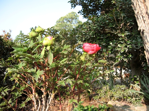 このあたりでは、だいたい桃の花も終わりになり、次から次に春の花が咲き競います。どうだんつつじが満開ですし、すいせん、ぼたん、しゃくなげなども咲き誇っています。
