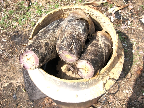 2回目は水の量も丁度良く、あっという間に出来上がりました。素早く打ってゆで上げすぐに食べる。そして付け合せは採りたてのわらびの天ぷら、おそばをお腹イッパイ頂いた1日でした。