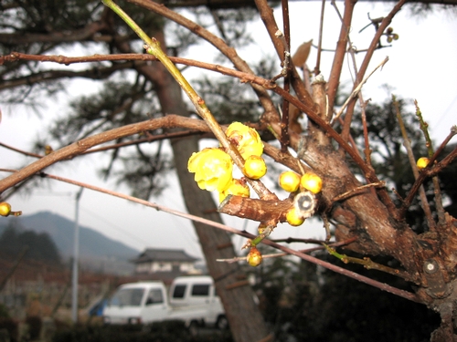 蝋梅が咲き出しました。良いにおいです。家の出入り口にあり、通るたびに梅のにおいを撒き散らします。