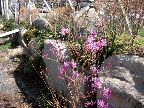 いよいよ、みつばつつじが咲き始めました。つつじの中で1番早く咲くそうですが(毎年同じコメントです)今年は早咲きの株を紹介しました。